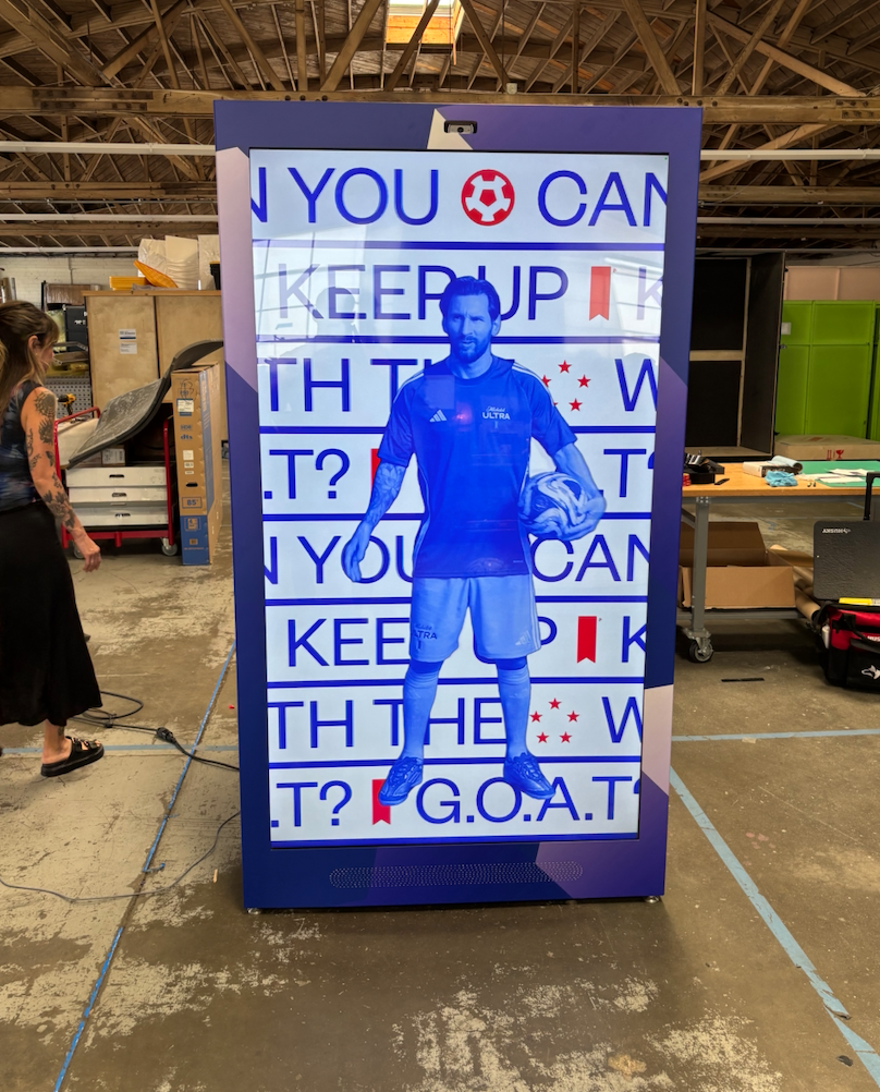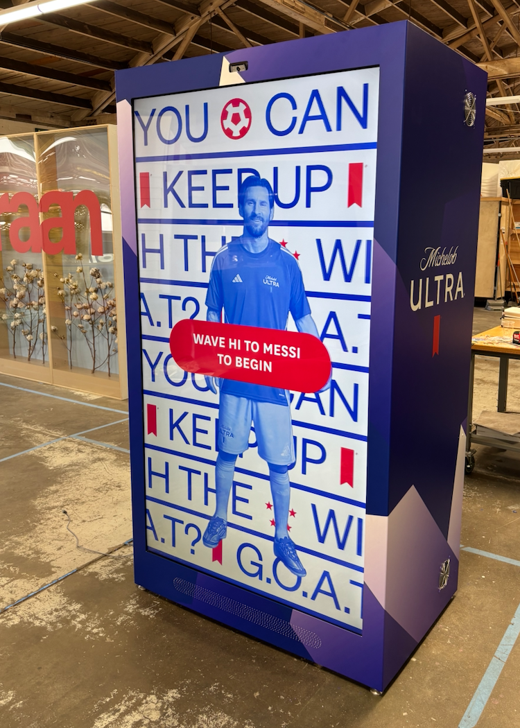 The technology lived in a large, box unit that sat flush with the wall. The hardware needed was simply an 85 inch monitor, a webcam, a Mac Mini, and a speaker bar. With this, the experience was triggered by the guest via a wave to Messi through motion tracking. Once the experience was in motion, tricks were performed (similar to HORSE in basketball) to get a letter for each successful trick, and at the end guests would scan a QR code and receive a video output to share on social. The experience was roughly 5 minutes per guest.